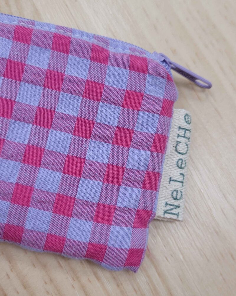 Funda de gafas confeccionada con tela Vichy de algodón de diferentes colores, interiormente está forrado con guata acolchada de color blanco de poliéster.